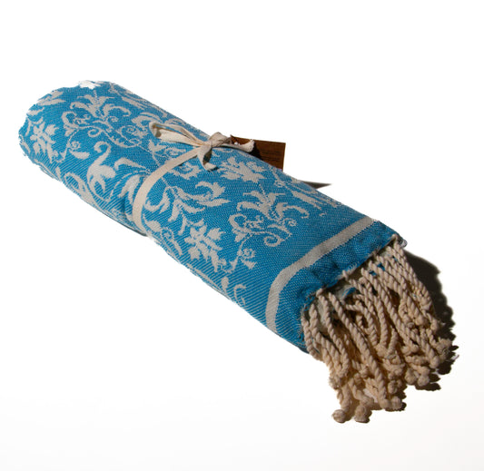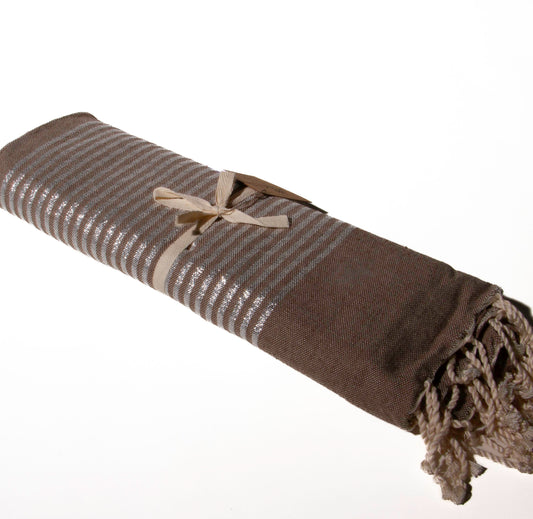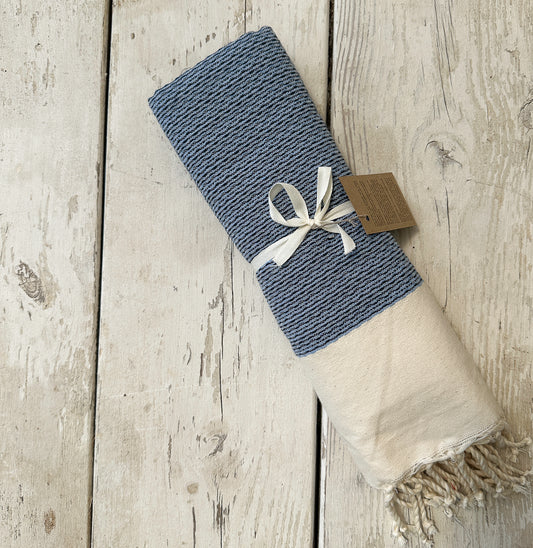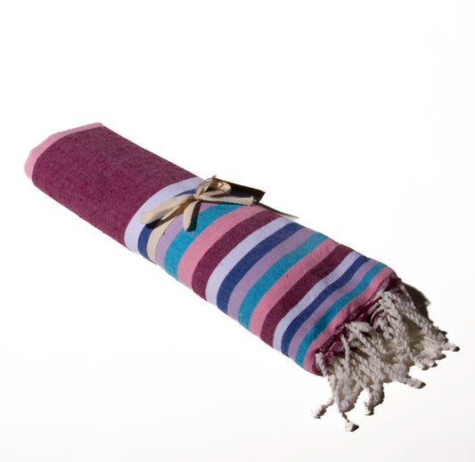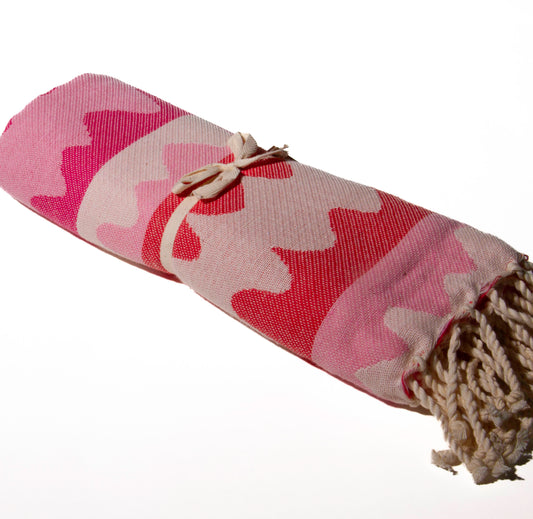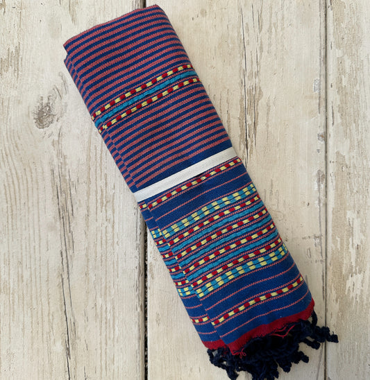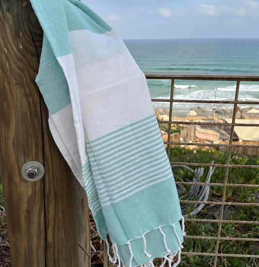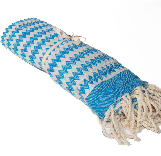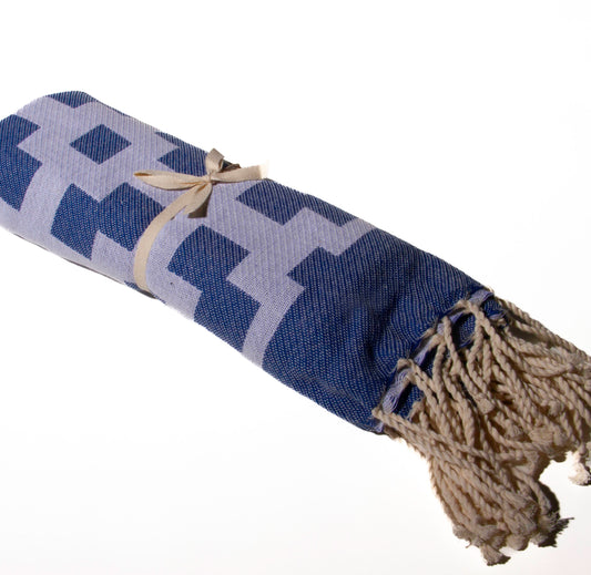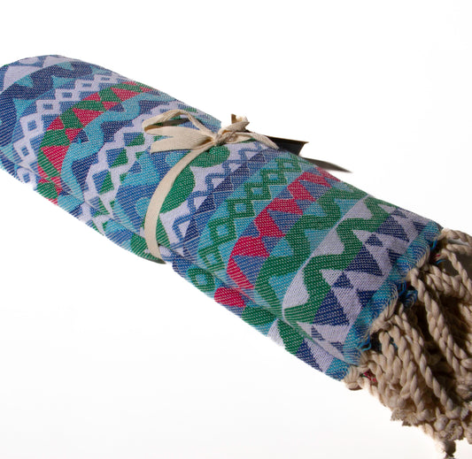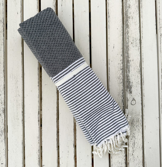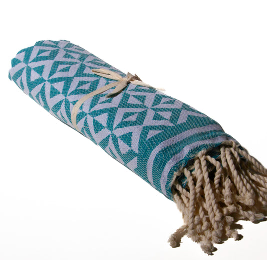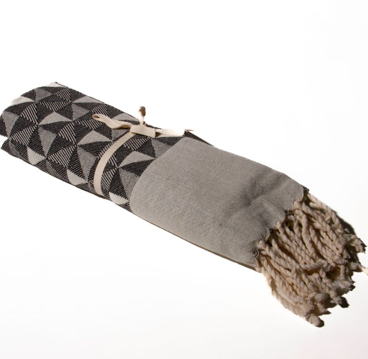 מגבת חוף לונג ז'אקרד משולשים עם פס לבן